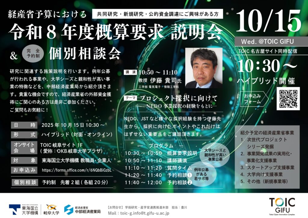 貴重な機会ですので、経済産業省の外部資金獲得にご関心のある方は是非ご参加ください。